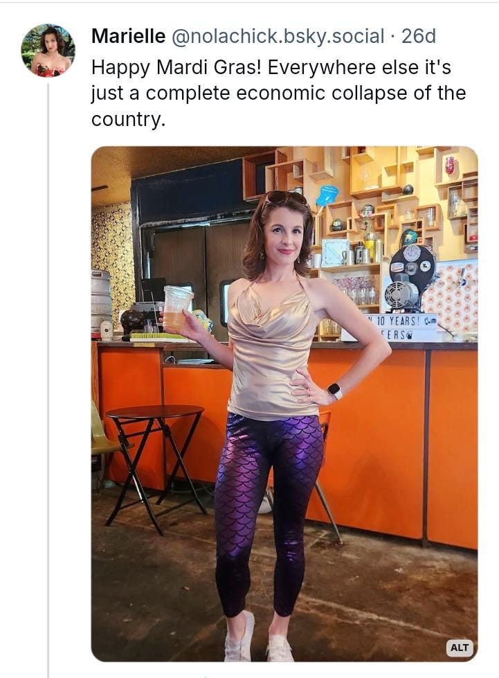 Gales of laughter mingled with feigned tears, but there was also a genuine sense of foreboding that had little to do with a party ending. Earlier in the day, in New Orleans, the krewes of Rex and Zulu staged the final parades of the 2025 Mardi Gras season. At some point that afternoon, author Marielle Songy posted greetings on the Bluesky social media app. Her message evoked a common refrain (“…Everywhere else it’s just Tuesday”) while acknowledging a nationwide crisis. In a buzzkill of historic proportions, the last day of Carnival coincided with Donald Trump, in his second term, making his first joint address to Congress. In the weeks before, a barrage of Executive Orders antagonized US allies, gutted federal agencies, and threatened a global trade war.